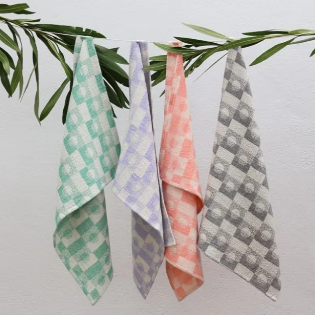 Découvrez la déclinaison corail de notre essuie-mains Iluna en tissage jacquard. Iluna signifie Lune : en effet le motif est un vichy illustrant la lune et le soleil, comme un Yin et Yang répété sur un tissu en coton. Le tissage Jacquard permet d’obtenir des motifs complexes et d’apporter une touche créative à nos intérieurs.