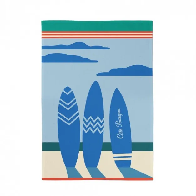 Notre torchon Kontatu est à l’image de notre côte basque : des planches de surf arpentent les plages, le sable chaud et beige clair couvre nos pied et le ciel bleu éclatant nous enveloppe. Voici la recette de ces instants magiques passés près de l’océan. Un souvenir qu’on emporte avec nous jusque dans la cuisine pour décorer notre pièce de ces belles et énergiques couleurs.