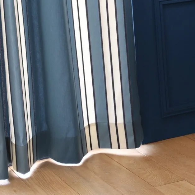 Un rideau chic pour ajouter du bleu à votre chambre à coucher ? Ce rideau est une invitation à s’évader, à prendre le temps de contempler. Ses pas de rayures sont harmonieux et délicats et contrastent parfaitement avec les murs de nos intérieurs. Il se marie à merveille avec de nombreuses couleurs hivernales; Il réchauffe un intérieur par son tombé somptueux.