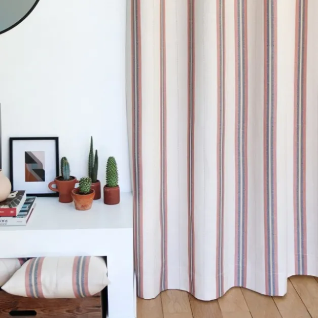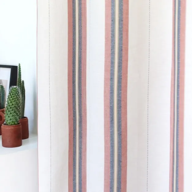 Le rideau Kanbo Terre cuite est confectionné en fils de coton et de lin, avec des rayures sophistiquées. Ces fils sont certifiés Oekotex, donc ils respectent les dernières normes textiles en termes d’hygiène et de respect de l’environnement. Cette matière métis naturelle apporte beaucoup d’authenticité au rideau, qui est ainsi beaucoup plus léger et souple que du 100% coton.