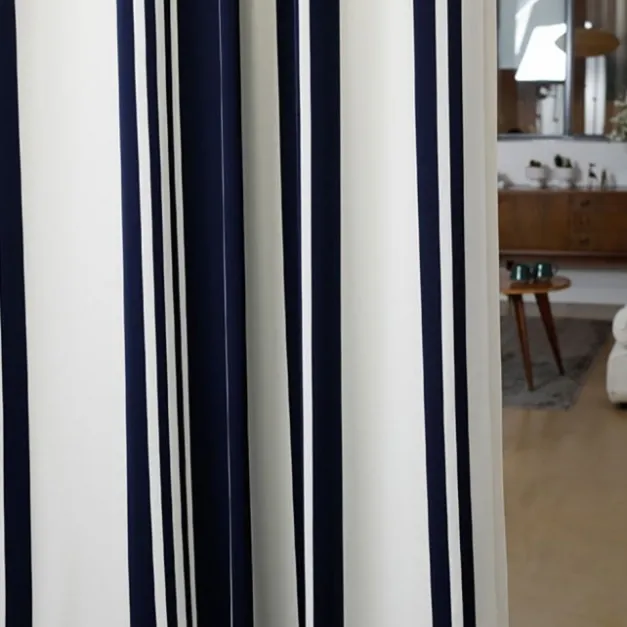 Maison Jean-Vier Nappe en coton bleu foncé et blanche à rayures
