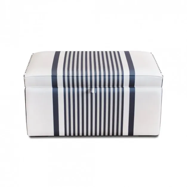 Découvrez le coffre Mendixka basque tapissé avec le tissu Ainhoa Réglisse : des rayures aux nuances de gris élégantes et contrastées de blanc. Ce coffre est très esthétique et se présente comme un objet déco. Il est aussi très pratique puisqu’il renferme un espace suffisant pour ranger vos affaires de façon invisible.