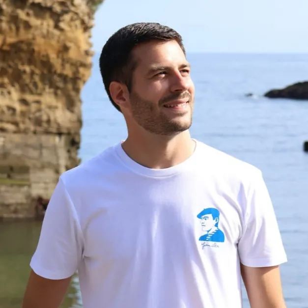Notre tee-shirt Artxiboak Homme arbore un visage traditionnel d’un homme basque, design qui raconte une histoire et témoigne de l’héritage et des traditions de cette région. Ce motif élégant capture l’essence même du Pays Basque, vous permettant d’afficher fièrement votre attachement à ses racines culturelles et à son histoire.