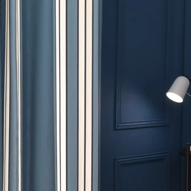Un rideau chic pour ajouter du bleu à votre chambre à coucher ? Ce rideau est une invitation à s’évader, à prendre le temps de contempler. Ses pas de rayures sont harmonieux et délicats et contrastent parfaitement avec les murs de nos intérieurs. Il se marie à merveille avec de nombreuses couleurs hivernales; Il réchauffe un intérieur par son tombé somptueux.