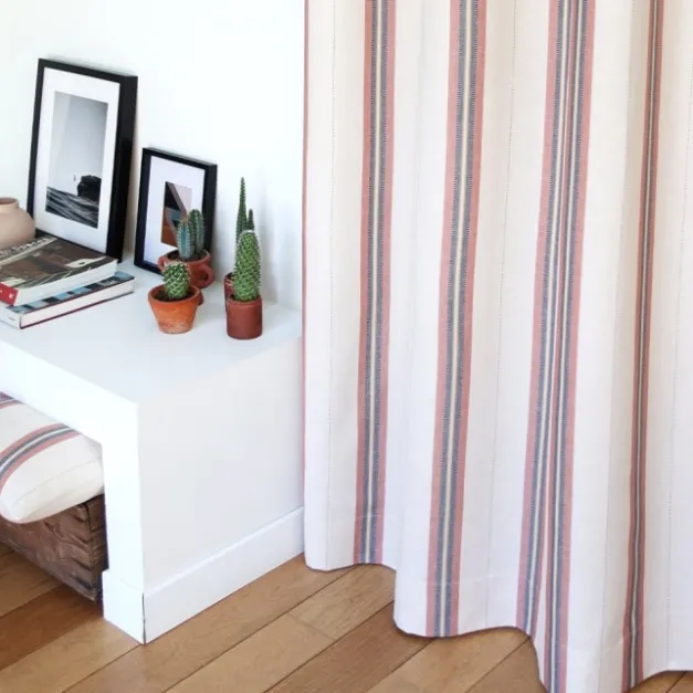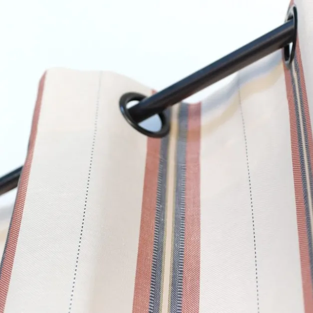 Le rideau Kanbo Terre cuite est confectionné en fils de coton et de lin, avec des rayures sophistiquées. Ces fils sont certifiés Oekotex, donc ils respectent les dernières normes textiles en termes d’hygiène et de respect de l’environnement. Cette matière métis naturelle apporte beaucoup d’authenticité au rideau, qui est ainsi beaucoup plus léger et souple que du 100% coton.