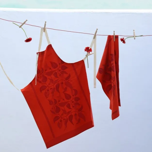 Notre nouveau tablier Kontatu Pimiento Vermillon est l’accessoire idéal qu’il vous faut dans votre cuisine pour le retour des beaux jours. Ses motifs confectionnés grâce au tissage Jacquard représentant les traditionnels piments d’Espelette amèneront chaleur et vie dans vos recettes. Son rouge Vermillon est également très élégant à porter pour le retour des beaux jours et l’été qui se profile.